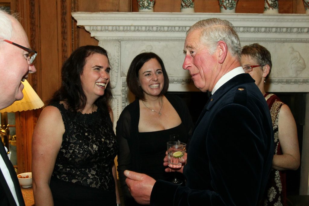 Dr. Milligan and others conversing with His Royal Highness The Prince of Wales at Dumfries House in Scotland, on October 22, 2017.